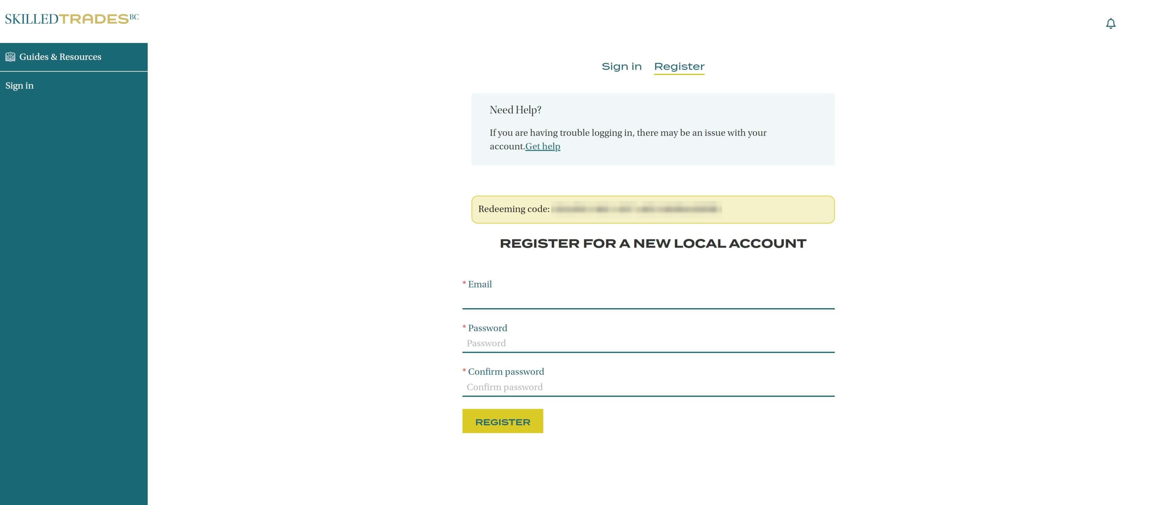 - New users seeking to register with the SkilledTradesBC can also sign up for the SkilledTradesBC portal.