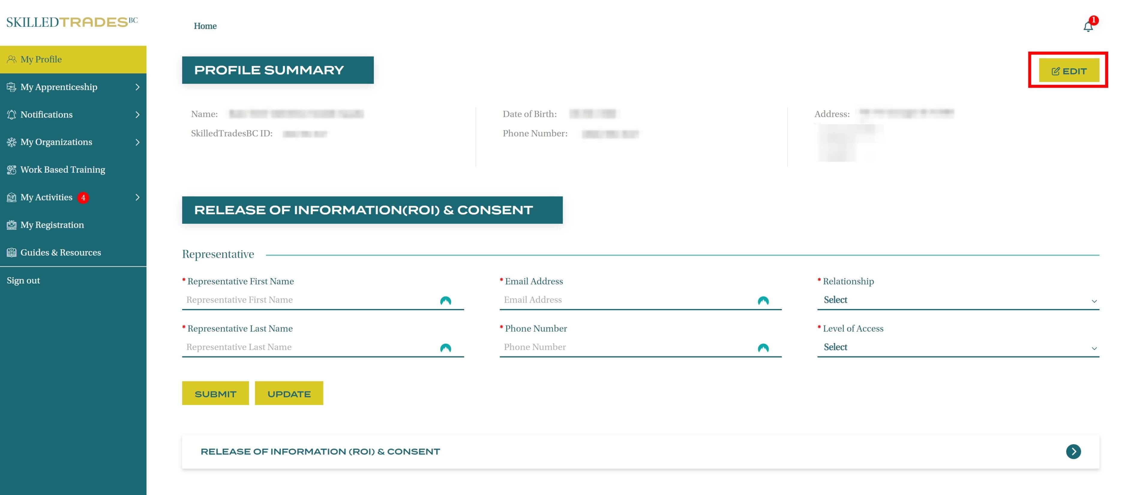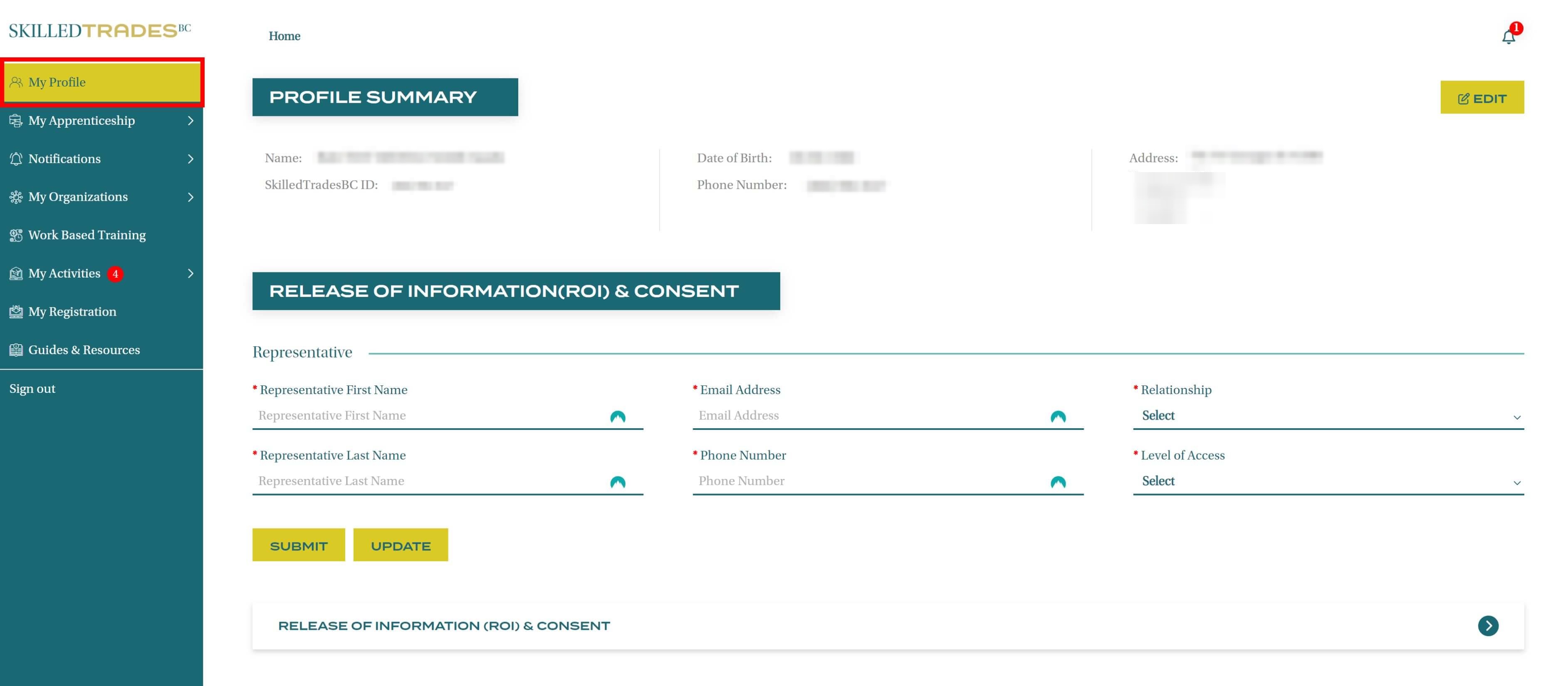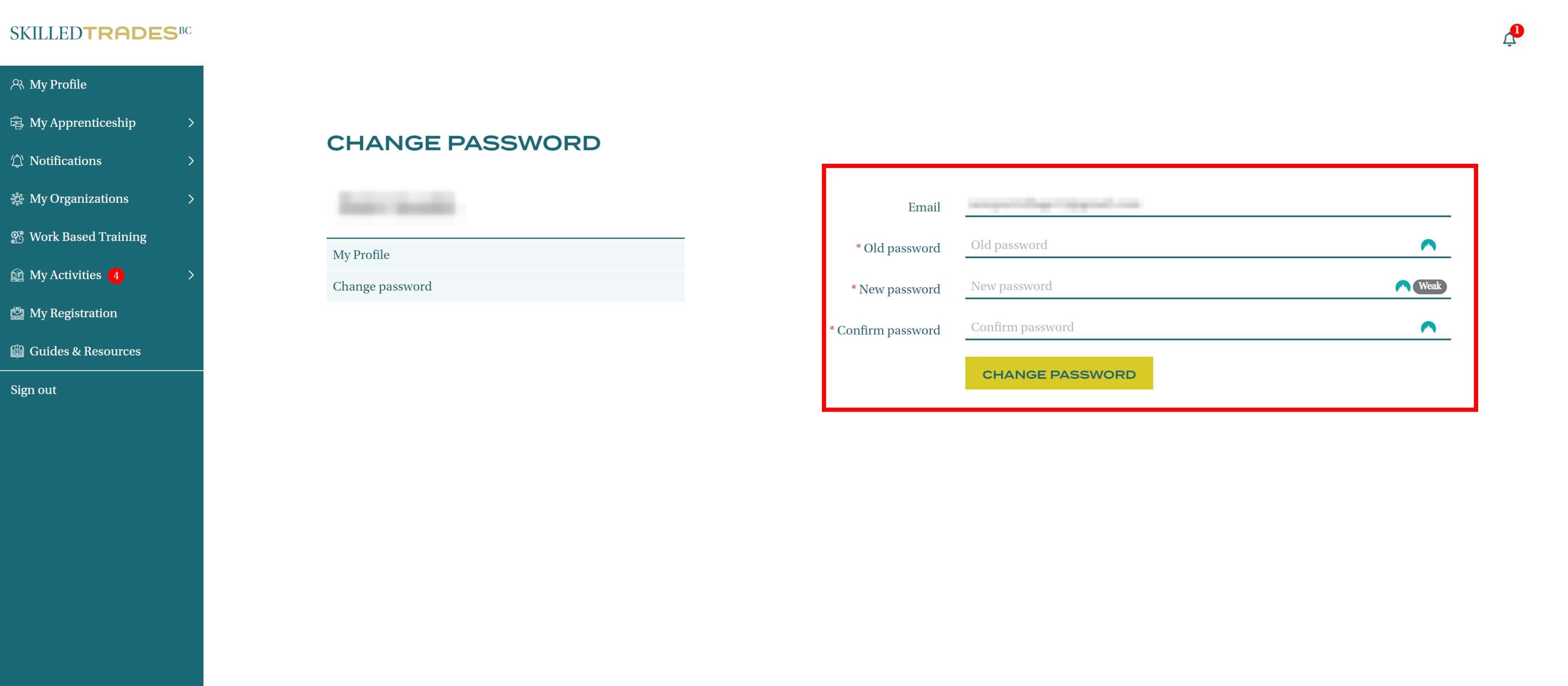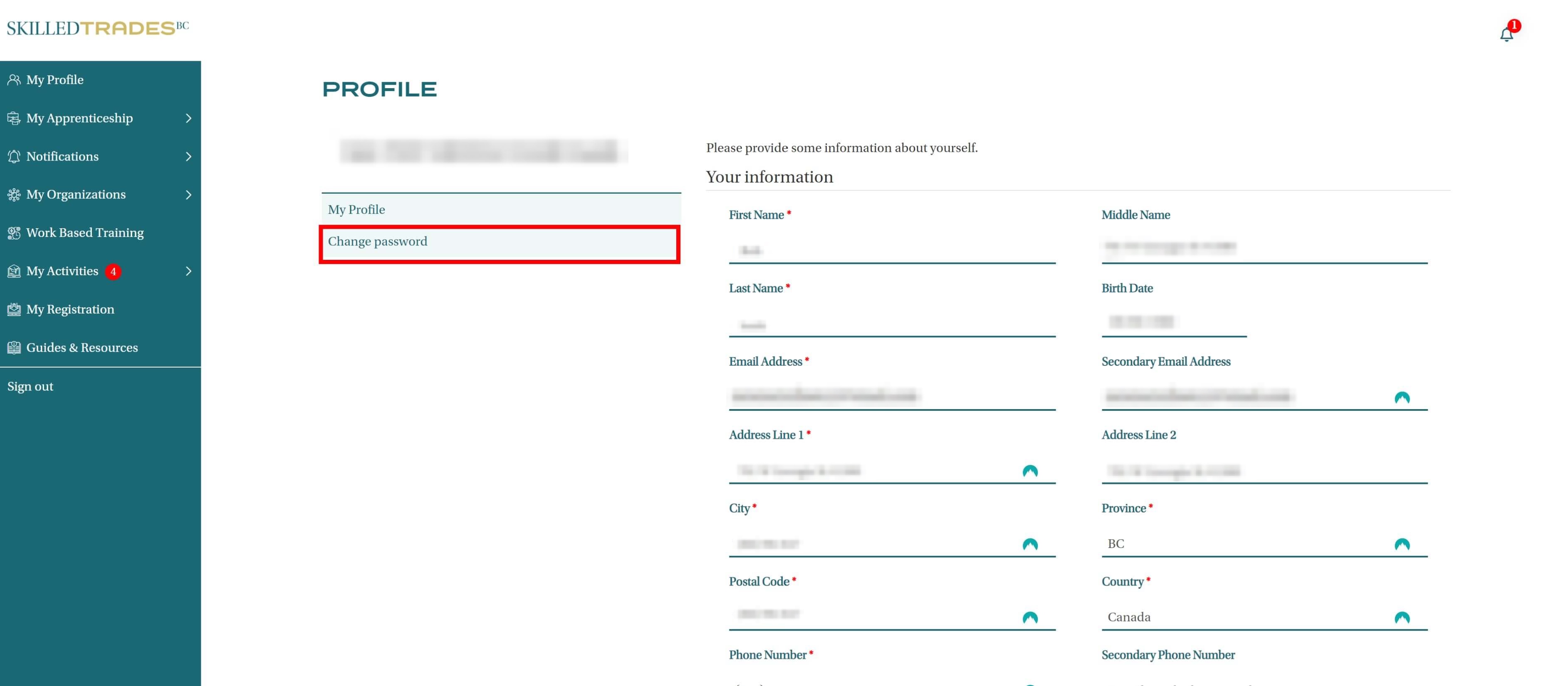 Log in to the SkilledTradesBC portal and navigate to My Profile.