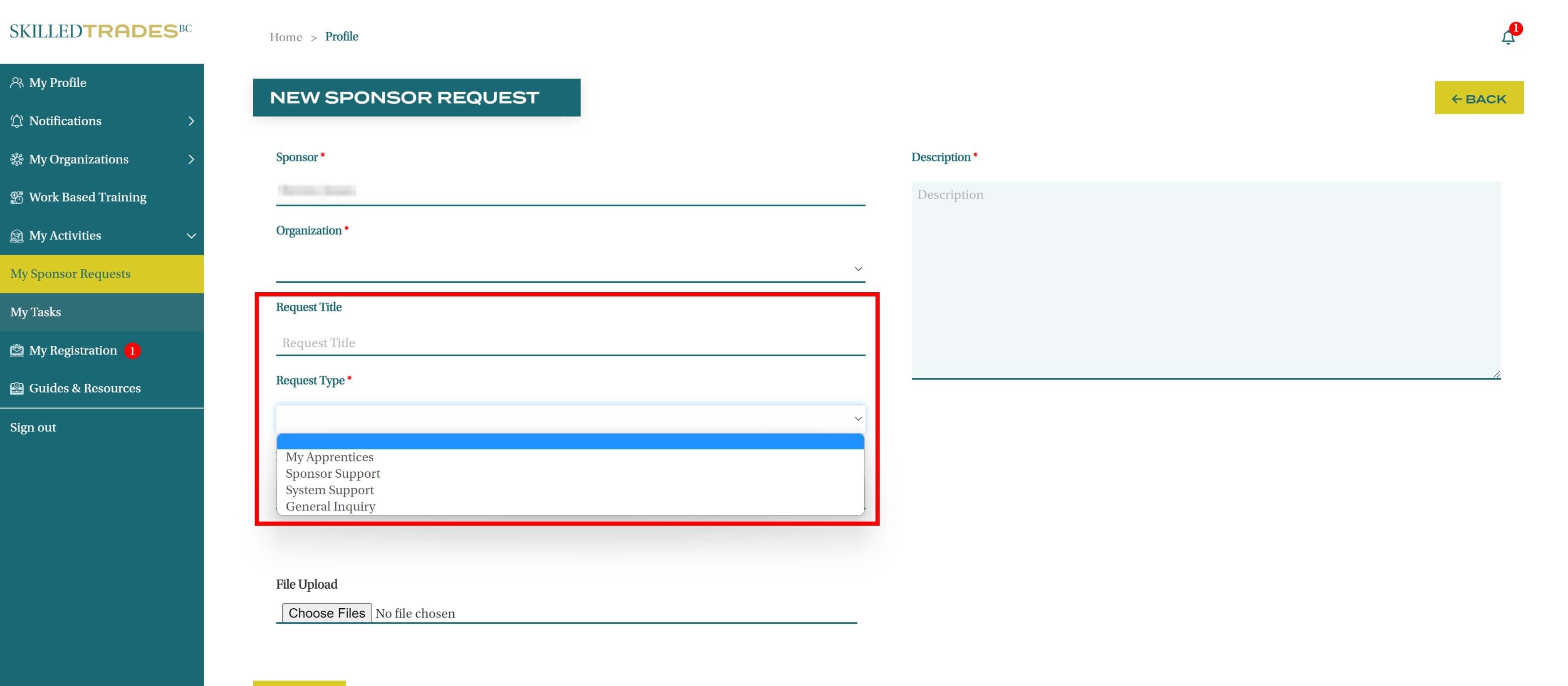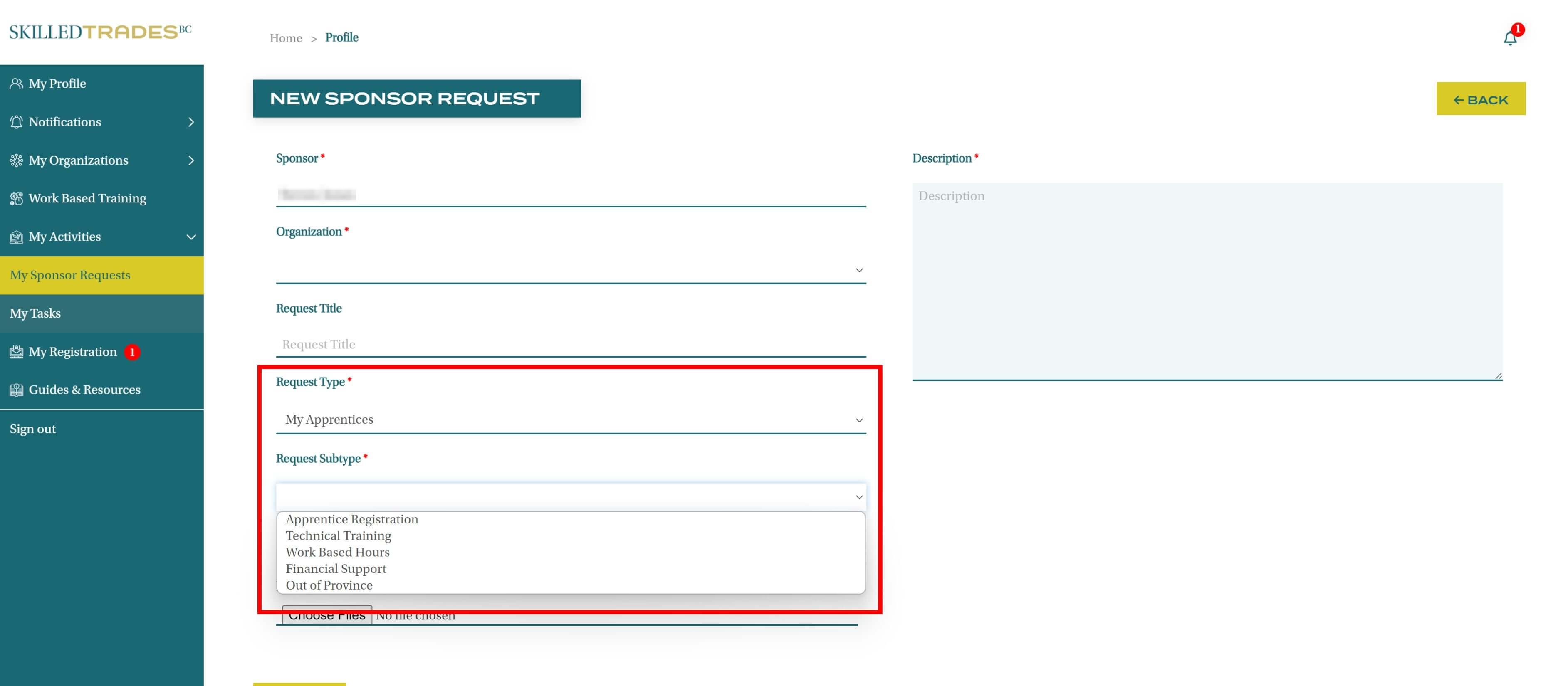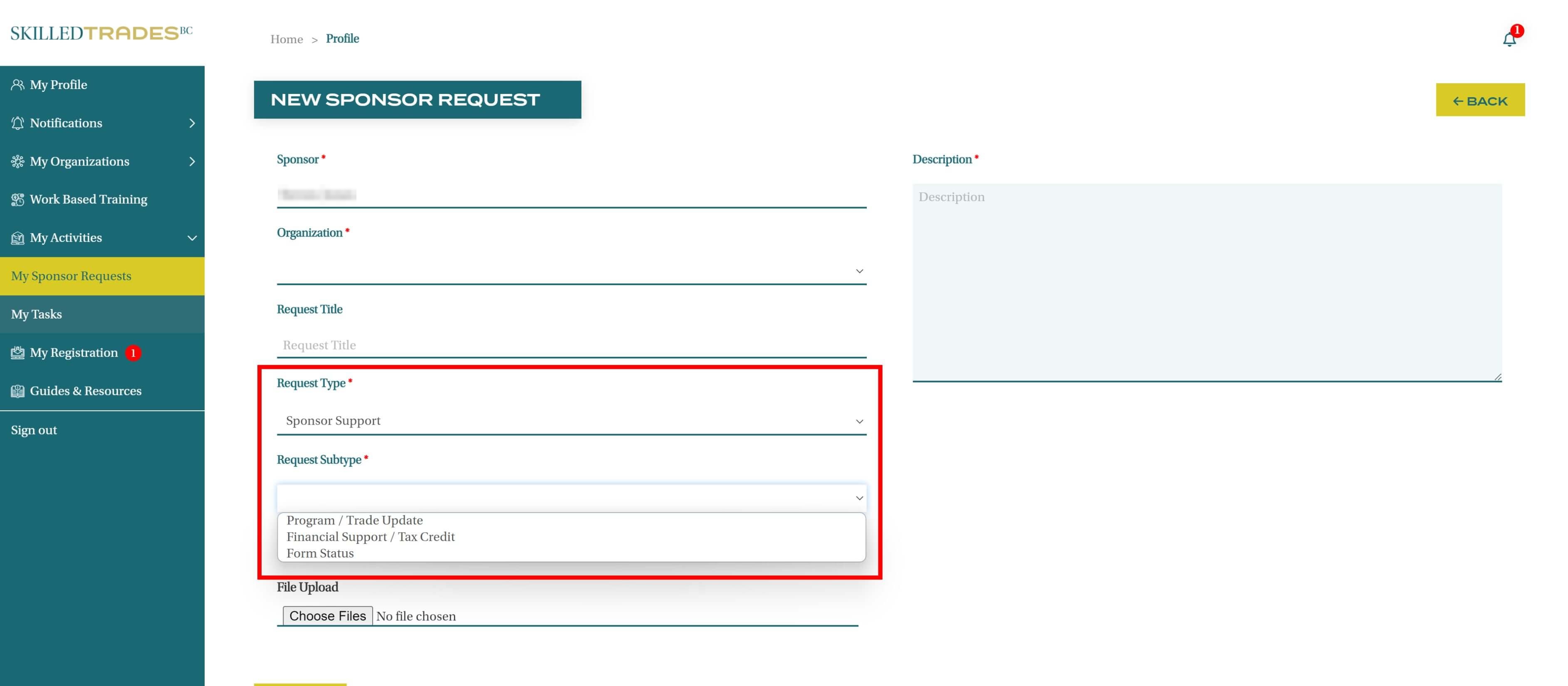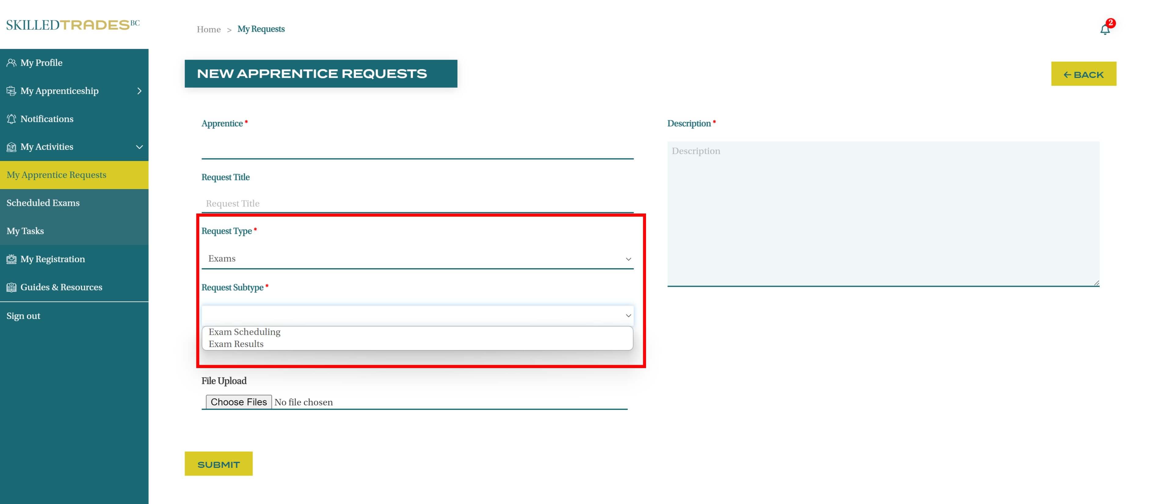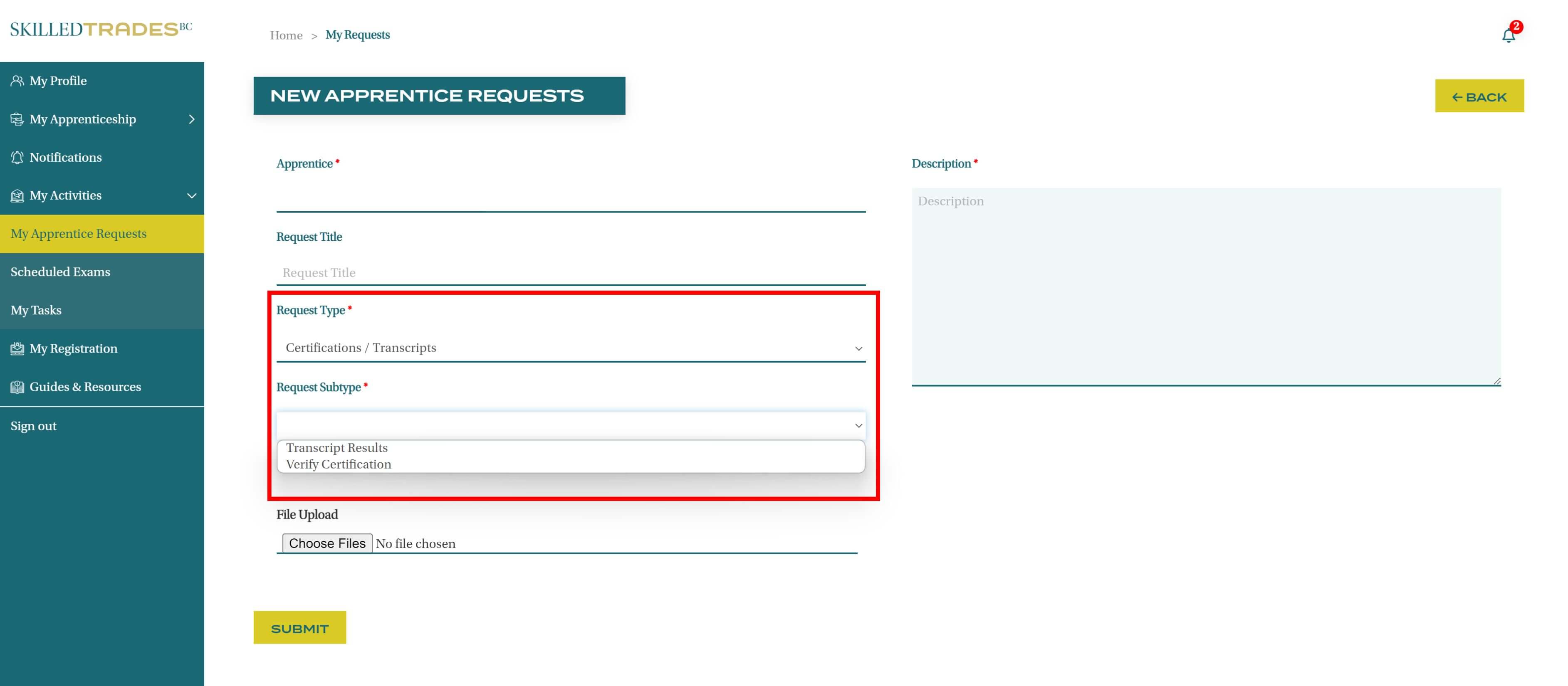 After you create a new request, SkilledTradesBC will work on the request. Afterward, you may be required to follow up on the request. View resolutions under Resolved Requests.