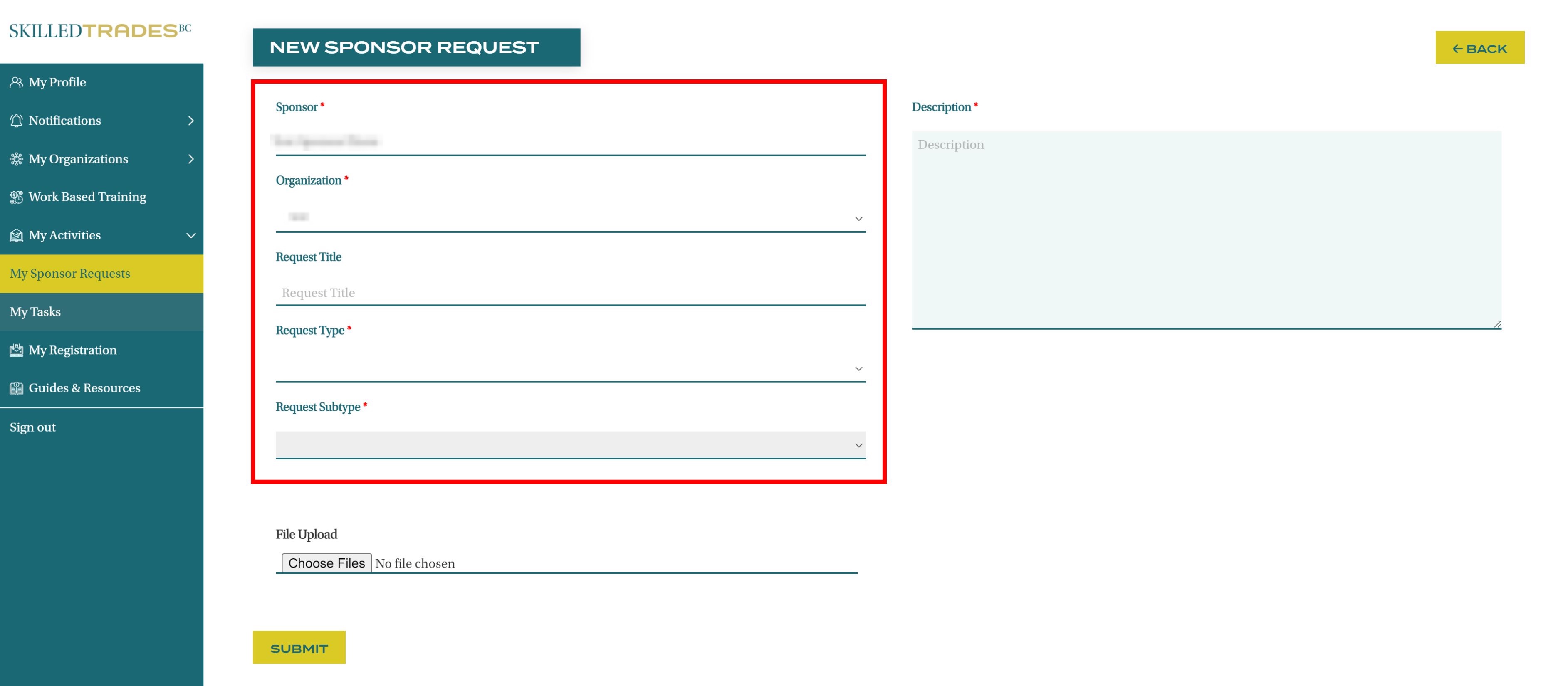 Create New Request - Sponsor