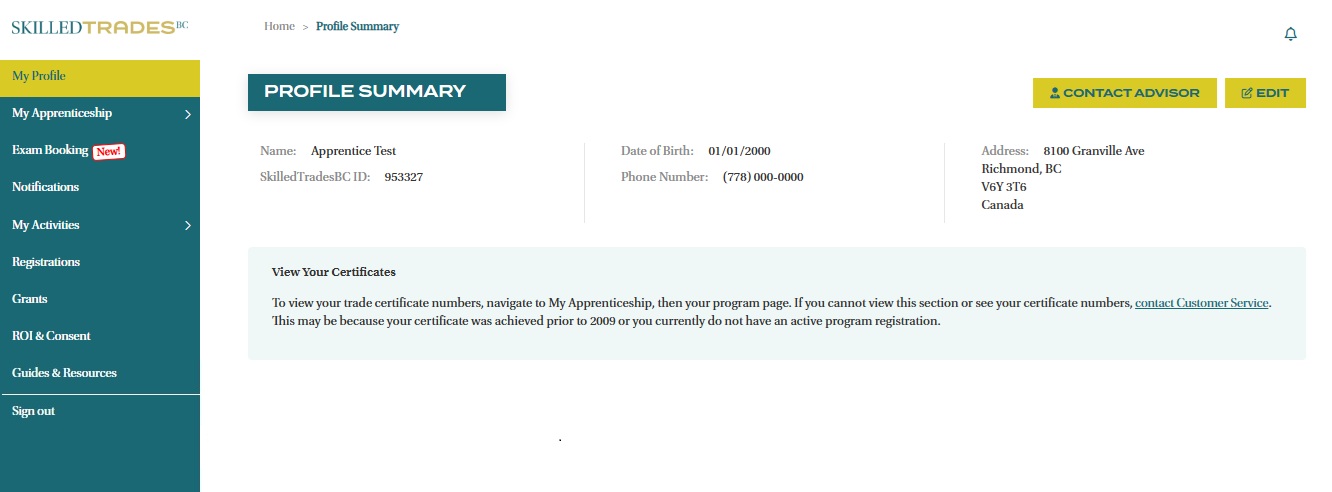 View any notifications from SkilledTradesBC that require your attention or action in this section.
