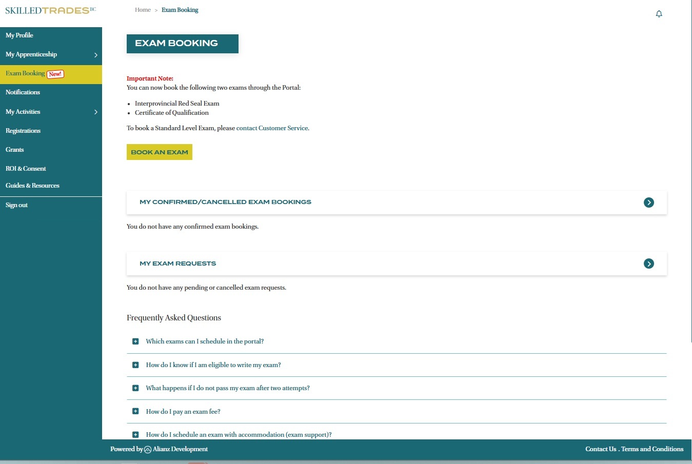 Book your Interprovincial Red Seal or Certificate of Qualification Exams online through the Exam Booking section.