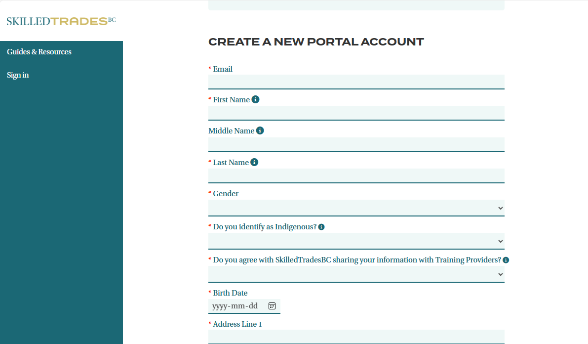 - Go to https://portal.skilledtradesbc.ca/Account/Login/Register.