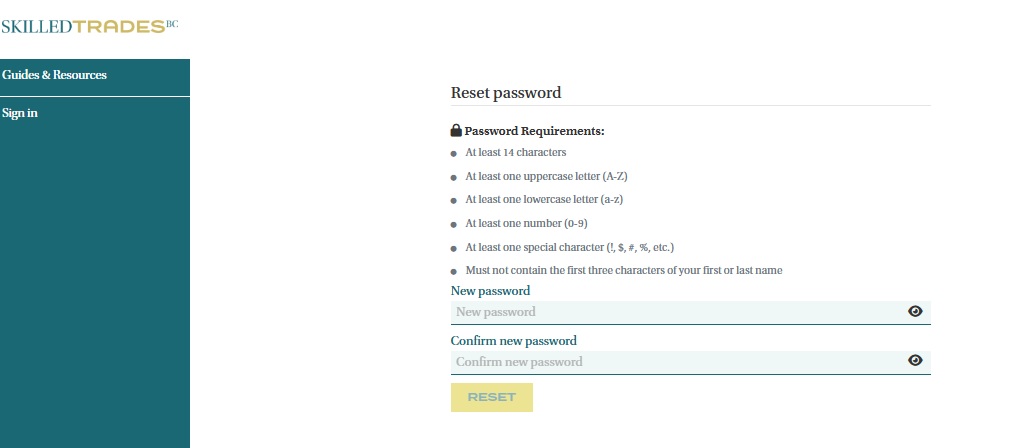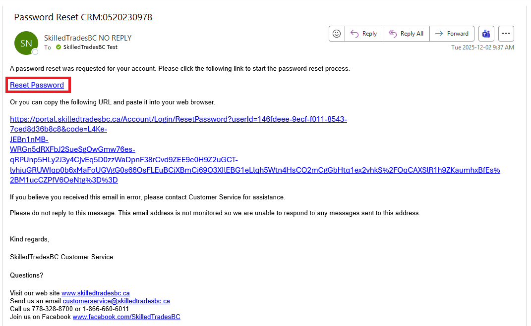 - You will receive an email from SkilledTradesBC with a link to reset your password. Click on this link to continue.