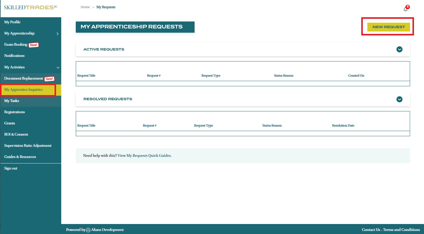 - Select “My Apprentice Inquiries” from the drop-down menu.