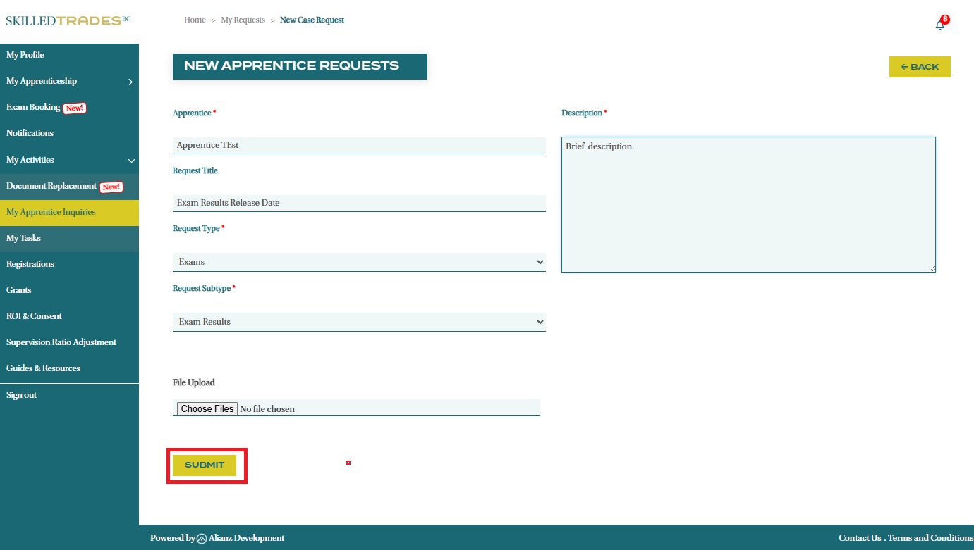 You can submit an inquiry or customer service request through “My Apprentice Inquiries”.
