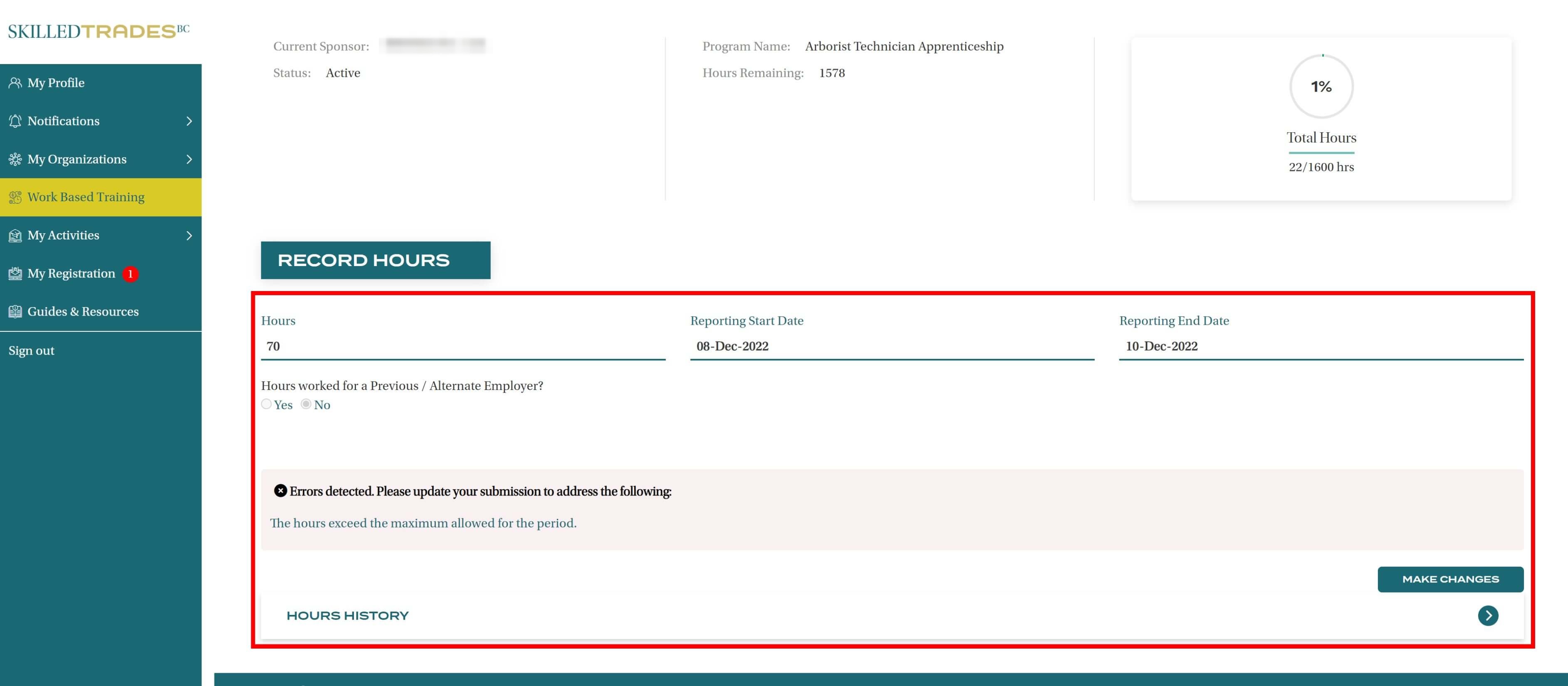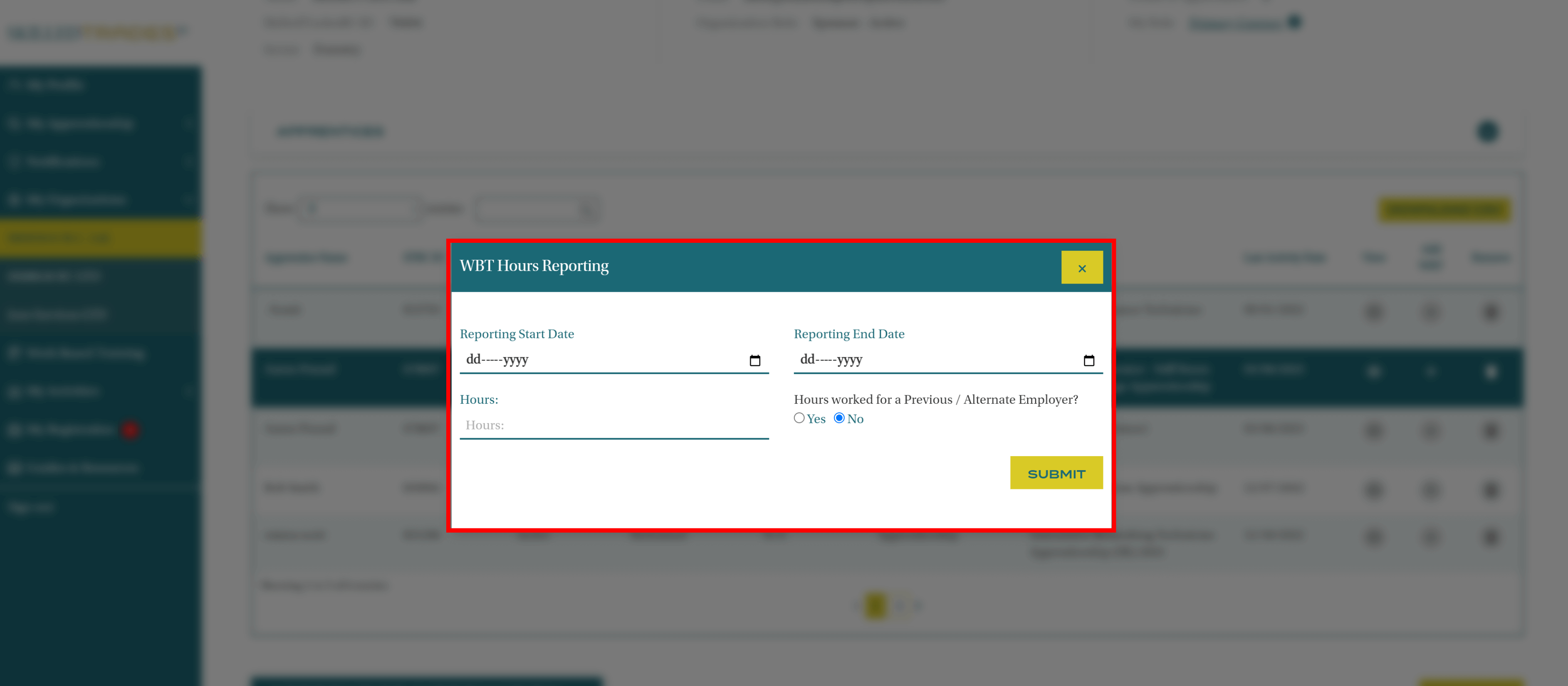 Employers/sponsors are responsible for submitting the work-based training hours for an apprentice registered under their sponsorship.