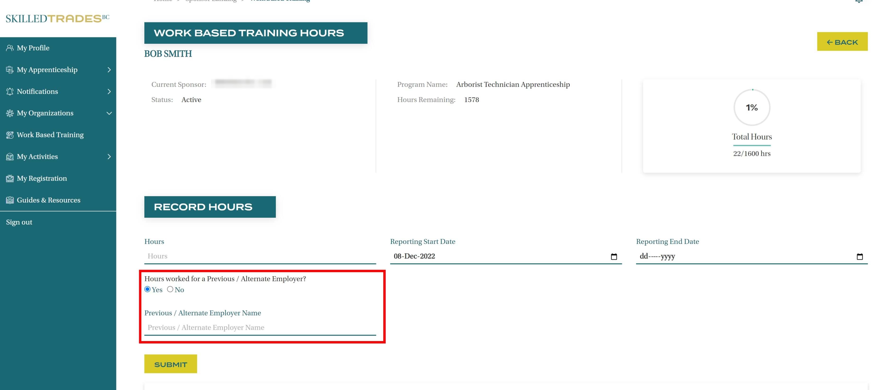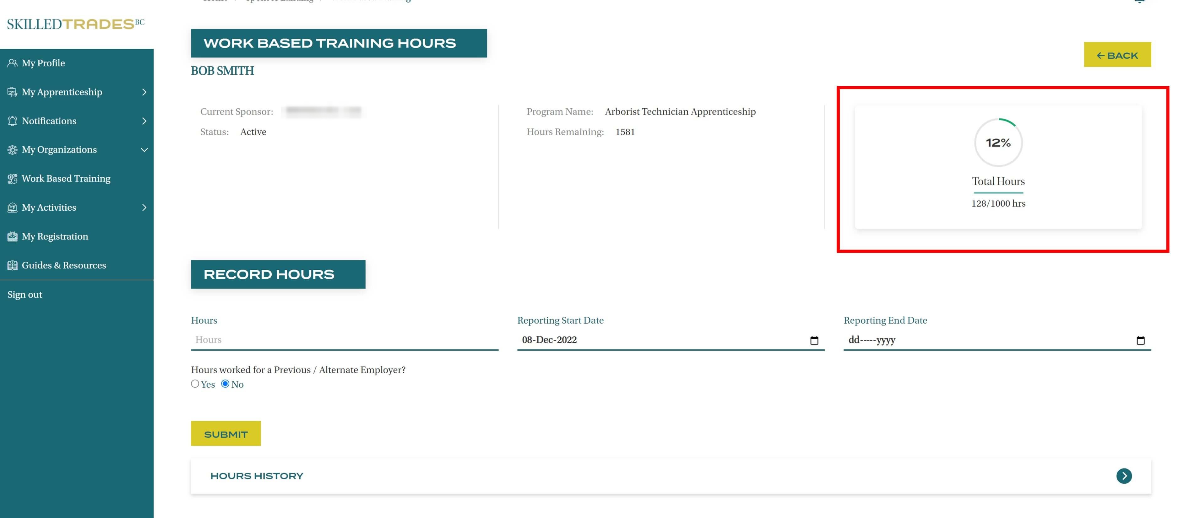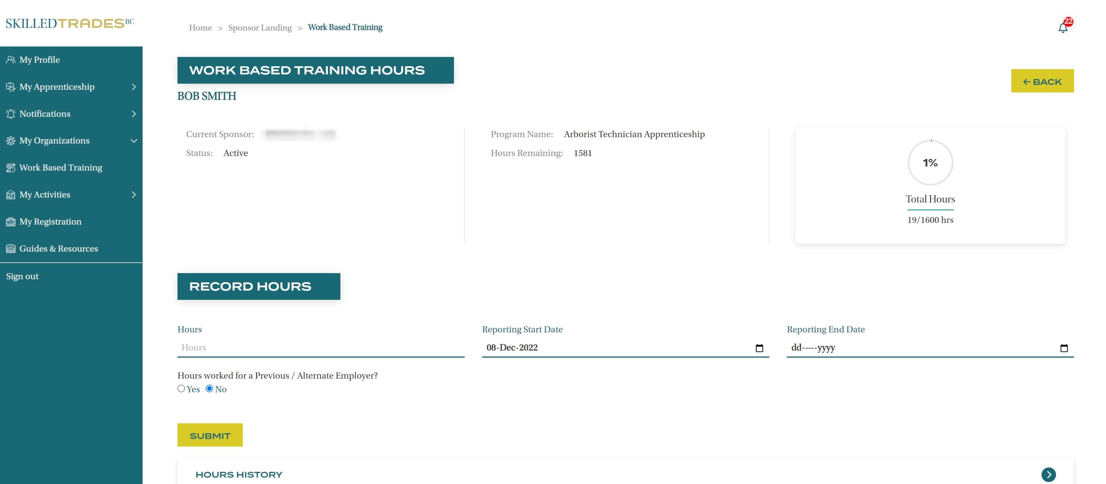The primary contact or authorized staff members can submit the hours for their apprentices through the SkilledTradesBC portal.