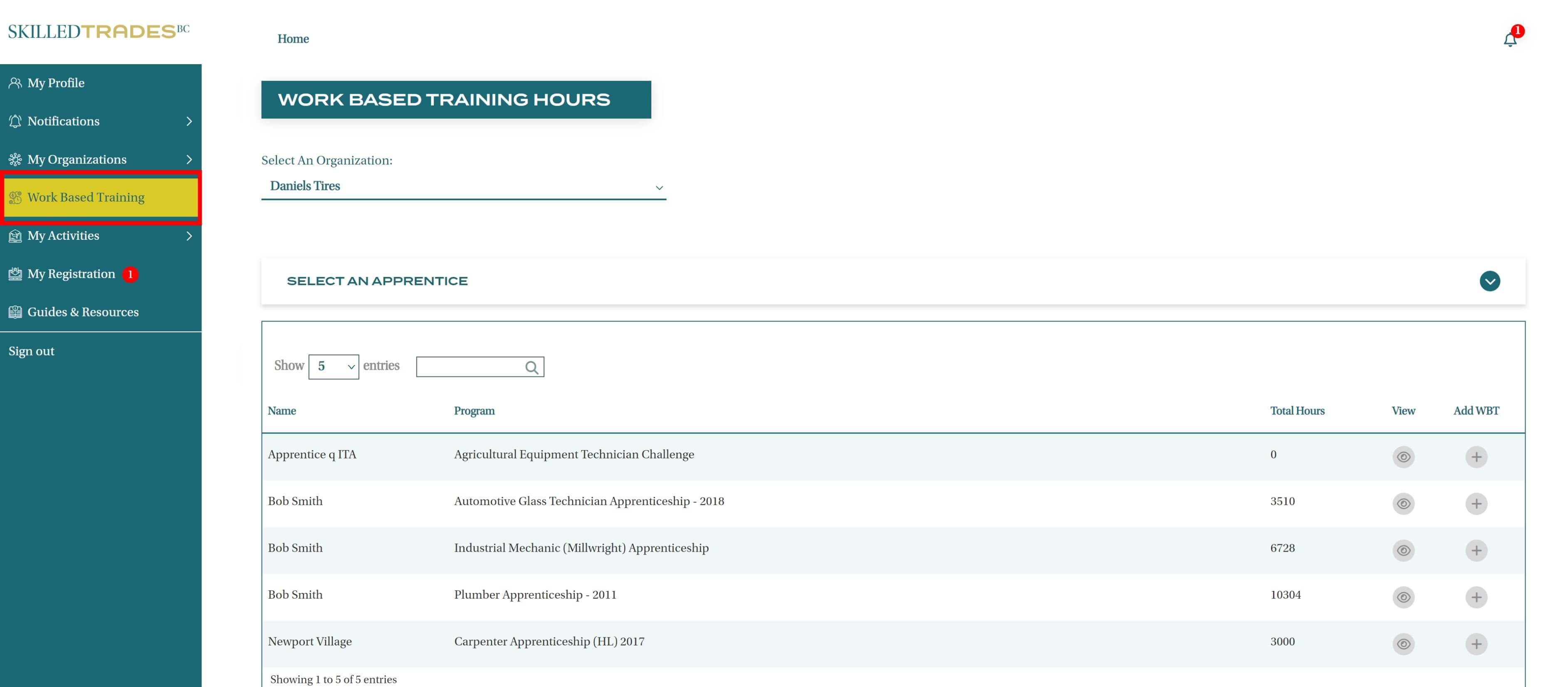 Navigate to the Work-Based Training section in the SkilledTradesBC portal.