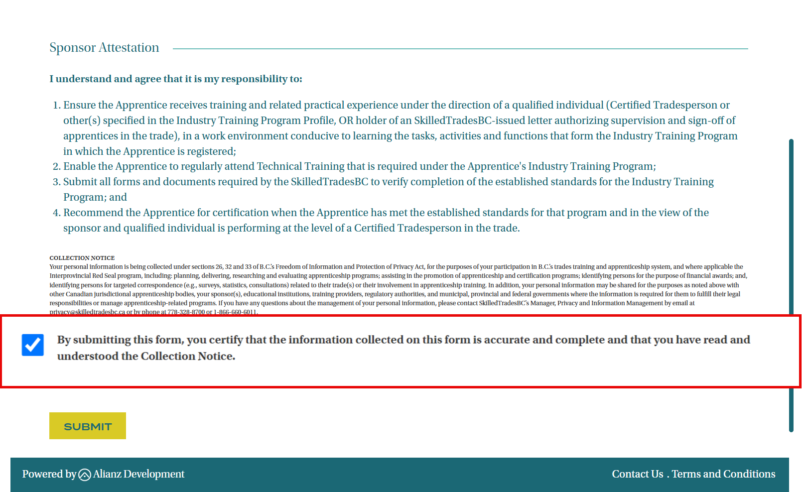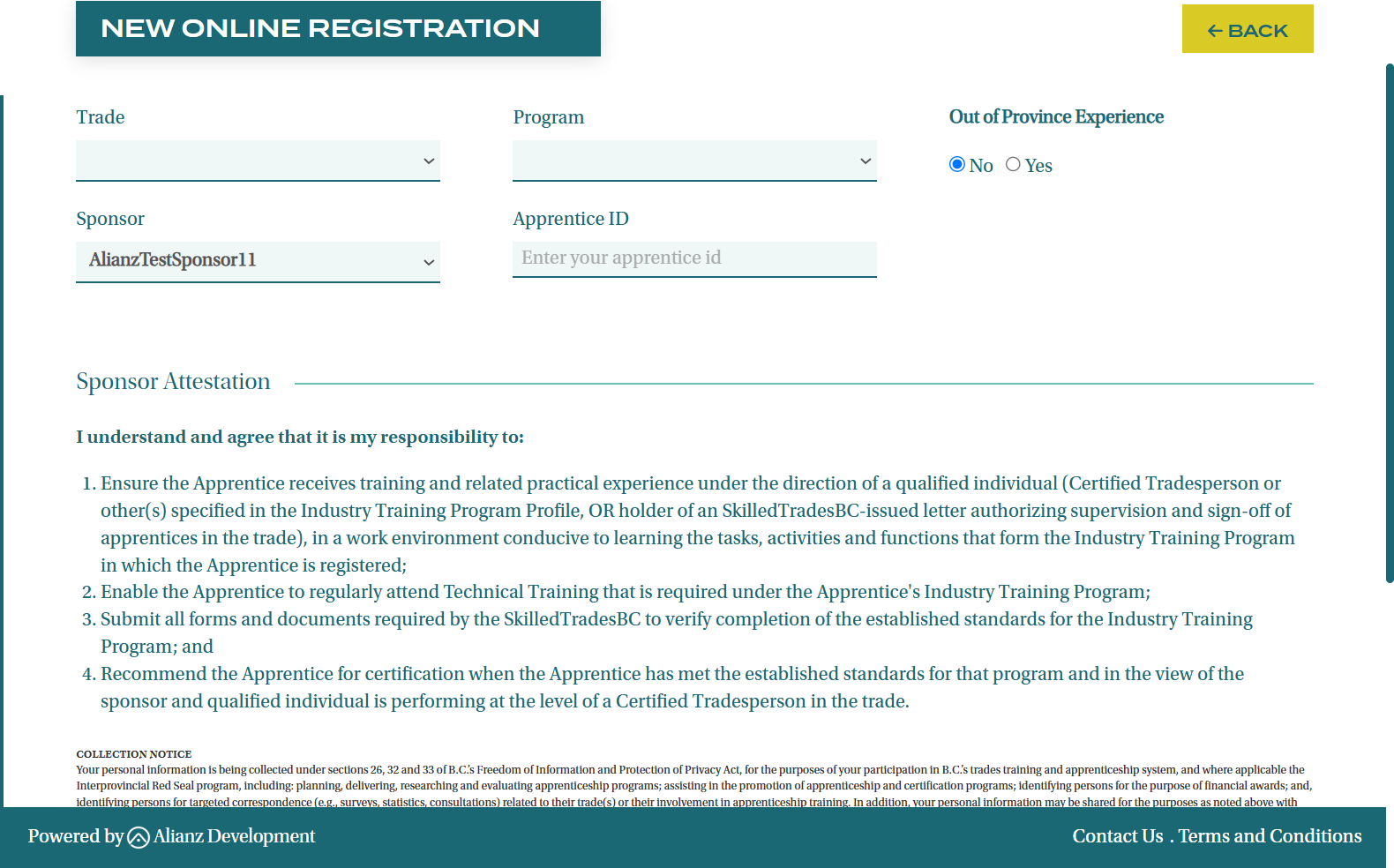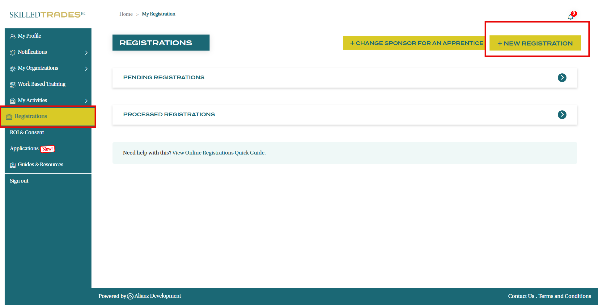 Sponsors can initiate the apprenticeship registration for apprentices via the Online Registration in the SkilledTradesBC portal.