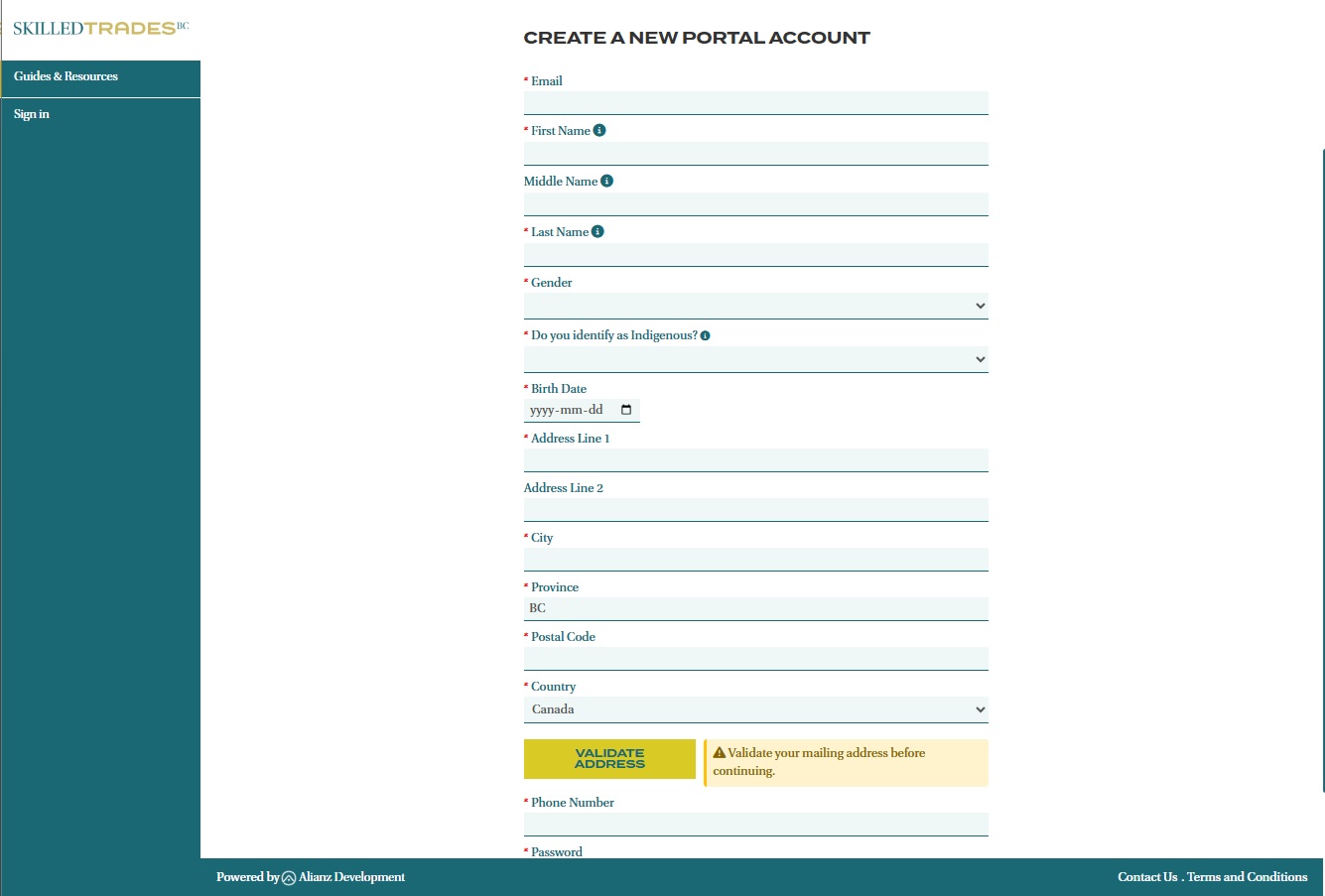 - Fill out all the mandatory fields in the account creation form.