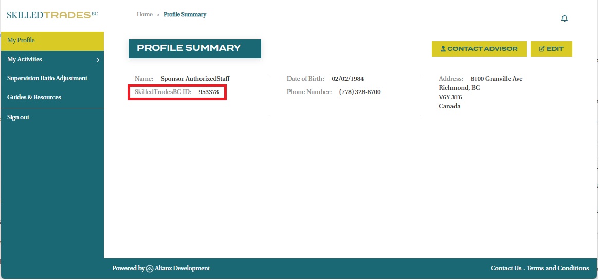 - Once you have created your account, you will receive a SkilledTradesBC ID, which can be found in the “My Profile” section.