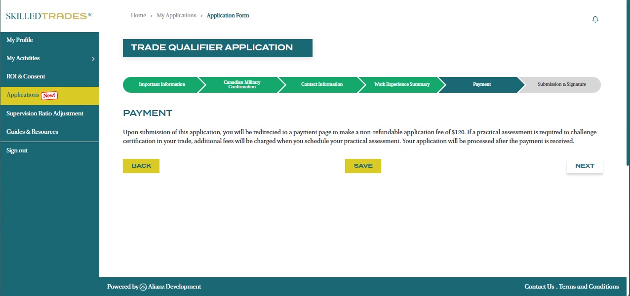 Note: Only one application per trade can be in progress at a time. Before starting a new application, ensure you have completed and submitted payment for your current application.