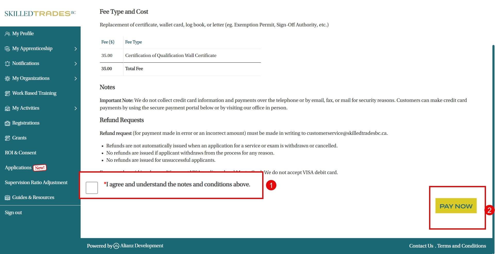 - Review and confirm that you have read the Terms and Conditions before clicking on “Pay Now”.