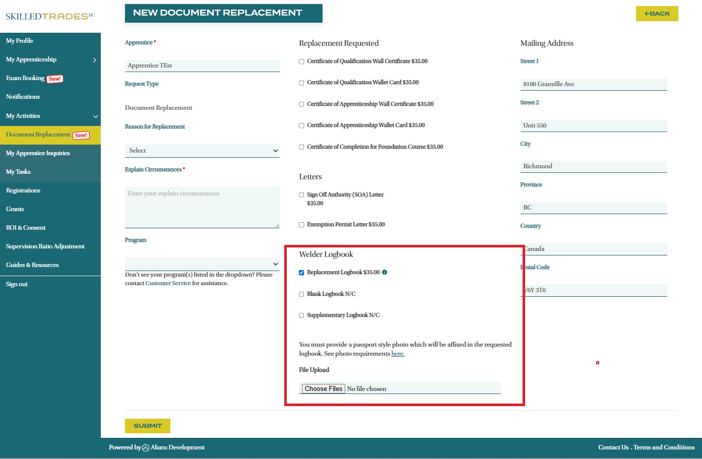 - When requesting to replace a Welder Logbook, you will need to submit a passport style photo of yourself.