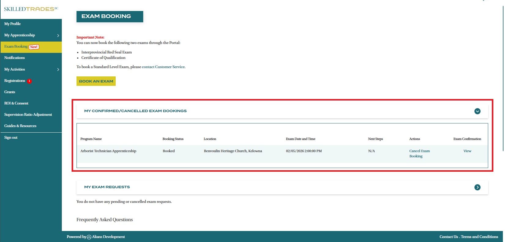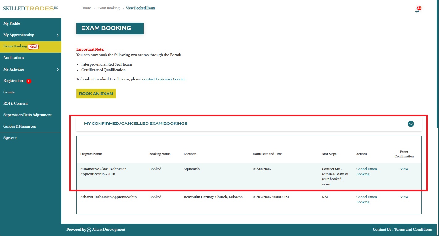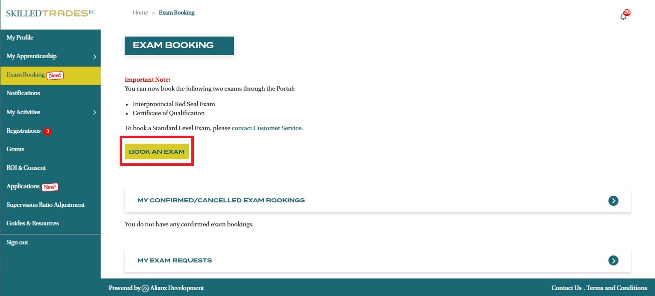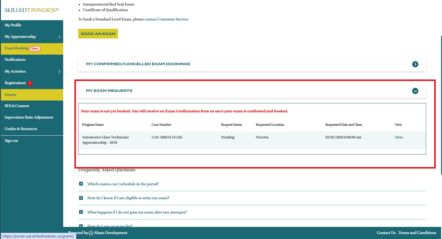 - You can use the Portal’s Exam Booking function to book Interprovincial Red Seal and Certificate of Qualification Exams.