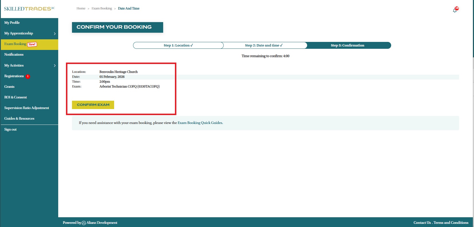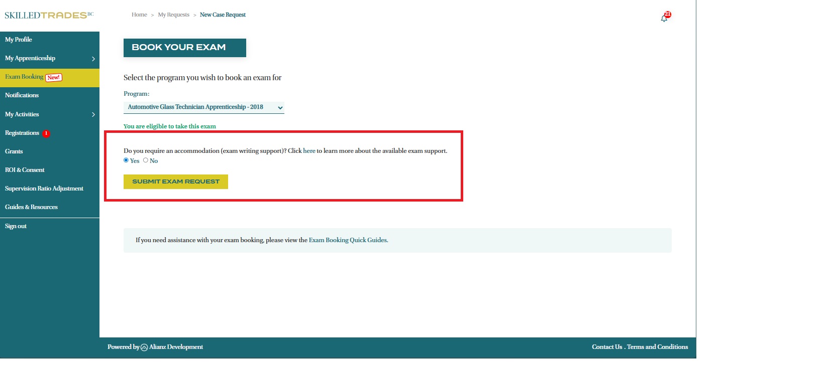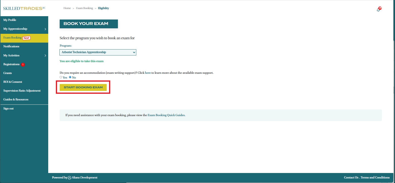 - You can use the Portal’s Exam Booking function to book Interprovincial Red Seal and Certificate of Qualification Exams.