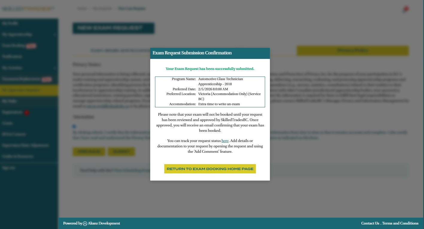 SkilledTradesBC will review your Exam Request once it has been submitted. We will contact you if additional information is required to process your request.