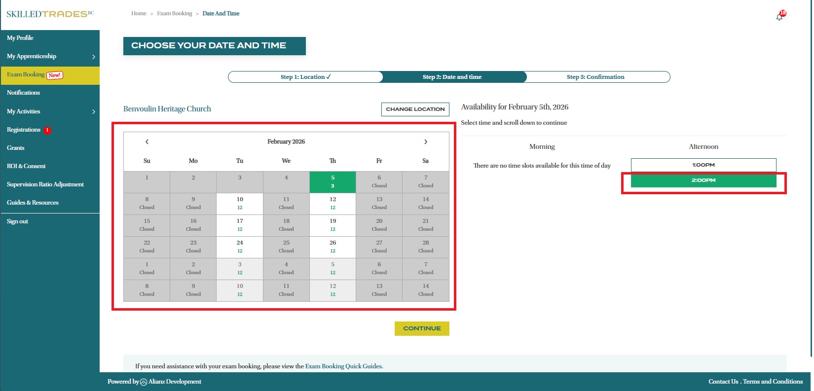 - Select your preferred time and date in the calendar, then click the “Continue” button.