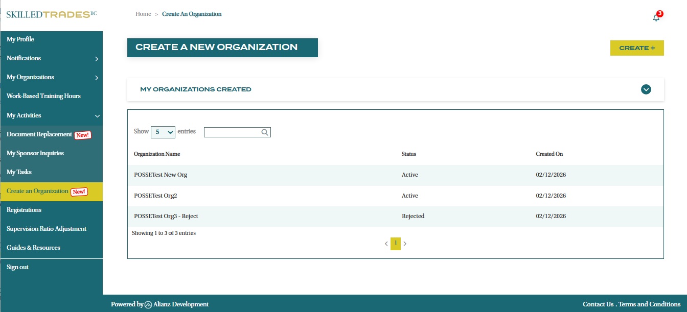 - Once you have submitted your form, we will review your application. Your application status will appear under the “My Organizations Created” section.