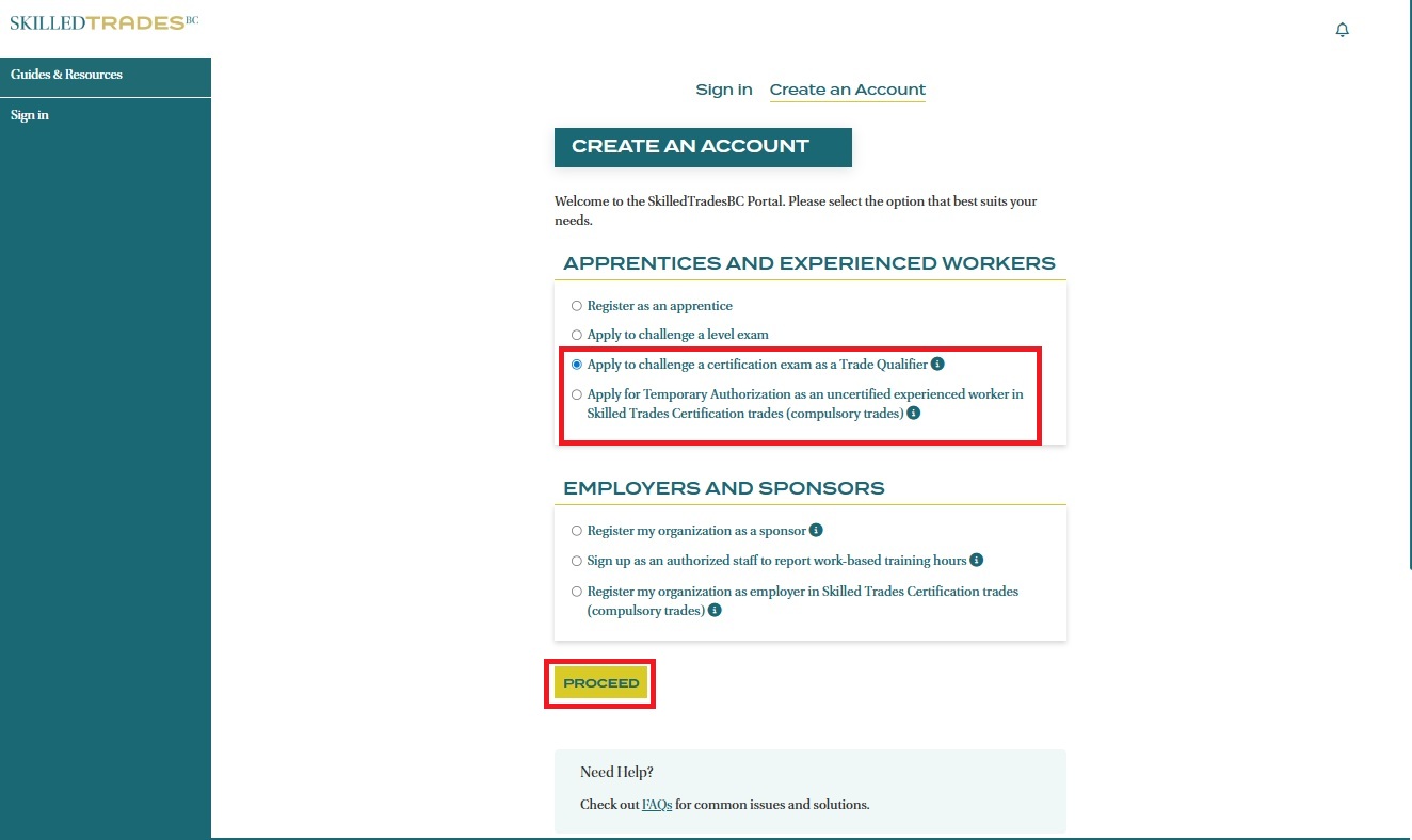 In this section, begin your online application as a Trade Qualifier or Uncertified Experienced Worker. You can also view any active applications you have submitted or drafted as well as applications that have been processed by SkilledTradesBC.