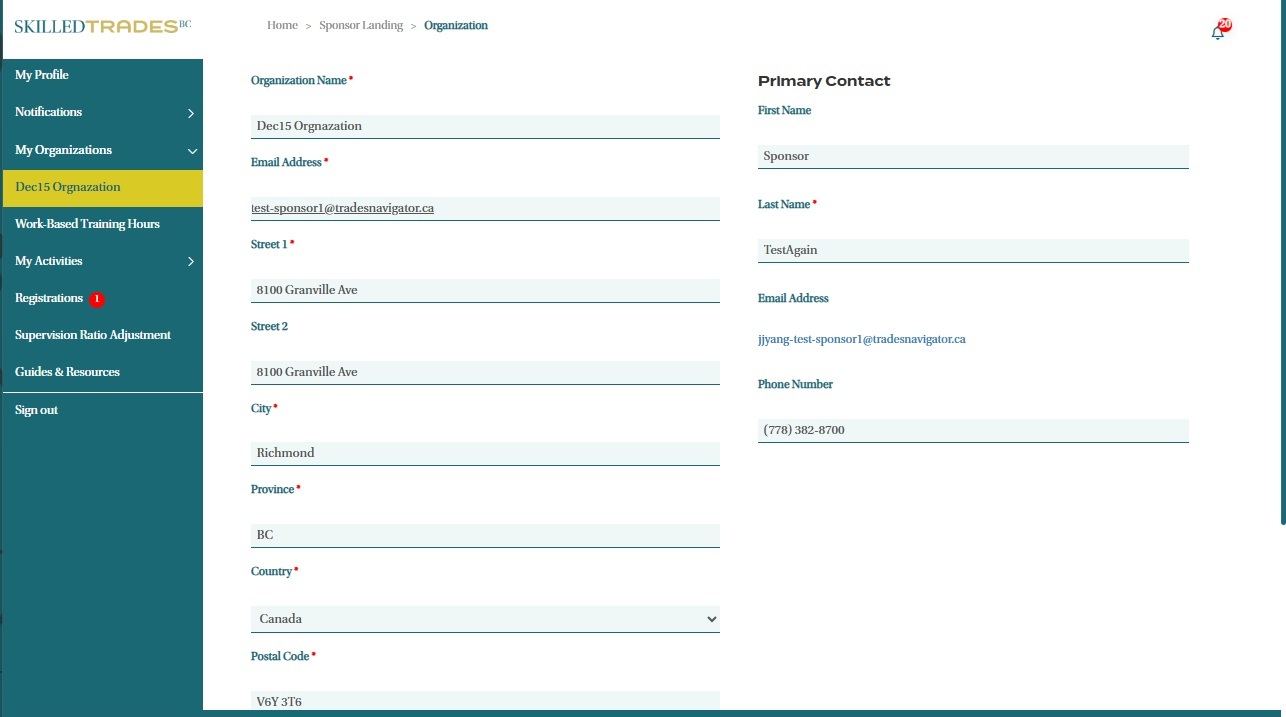 If your Sponsor Organization account is managed by multiple users (such as Authorized Staff members), note that only the Primary Contact user can view and edit an organization’s details. Authorized staff members have view-only access to an organization’s details.